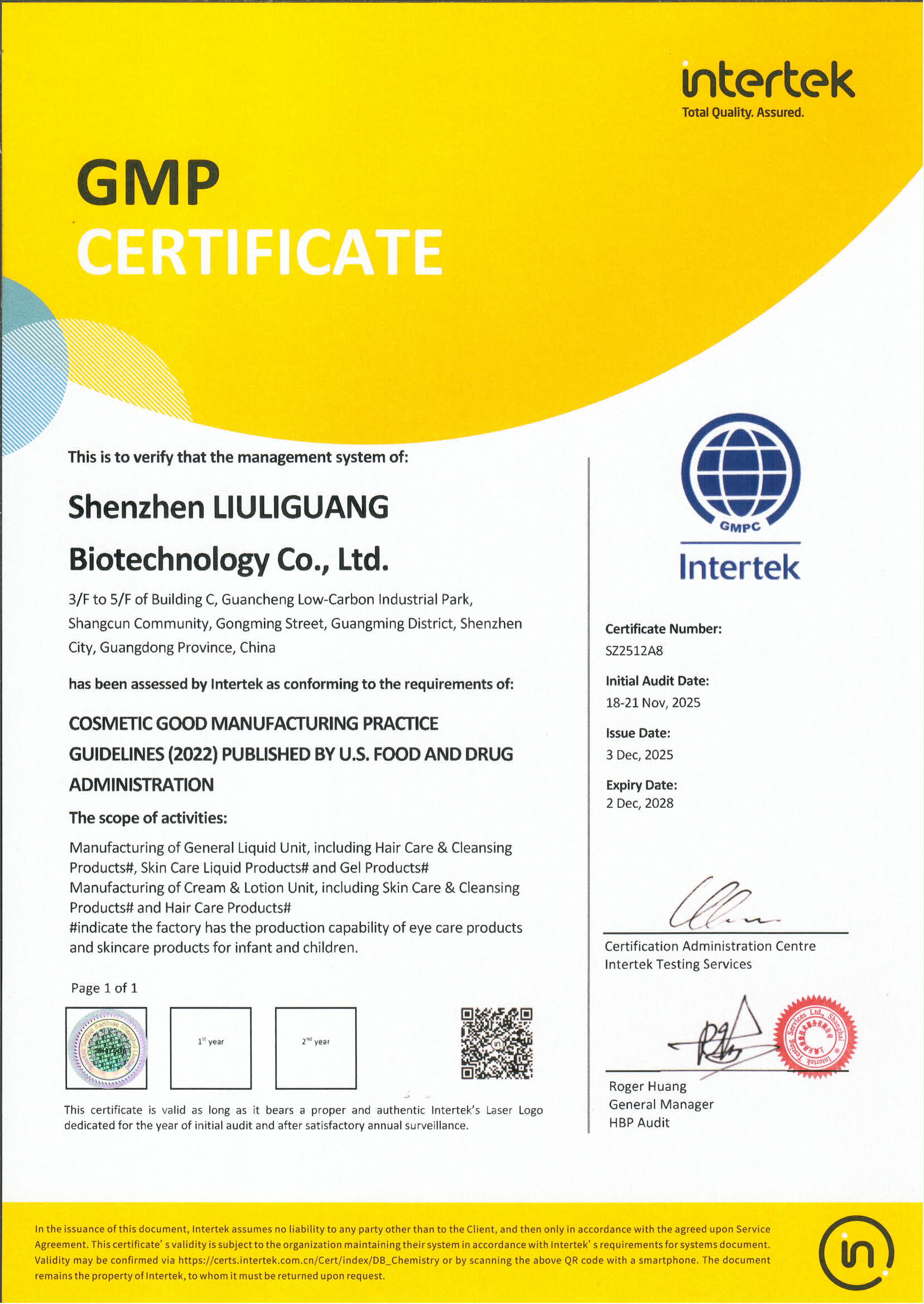 琉璃光GMP證書_美國(guó)GMPC英文證書