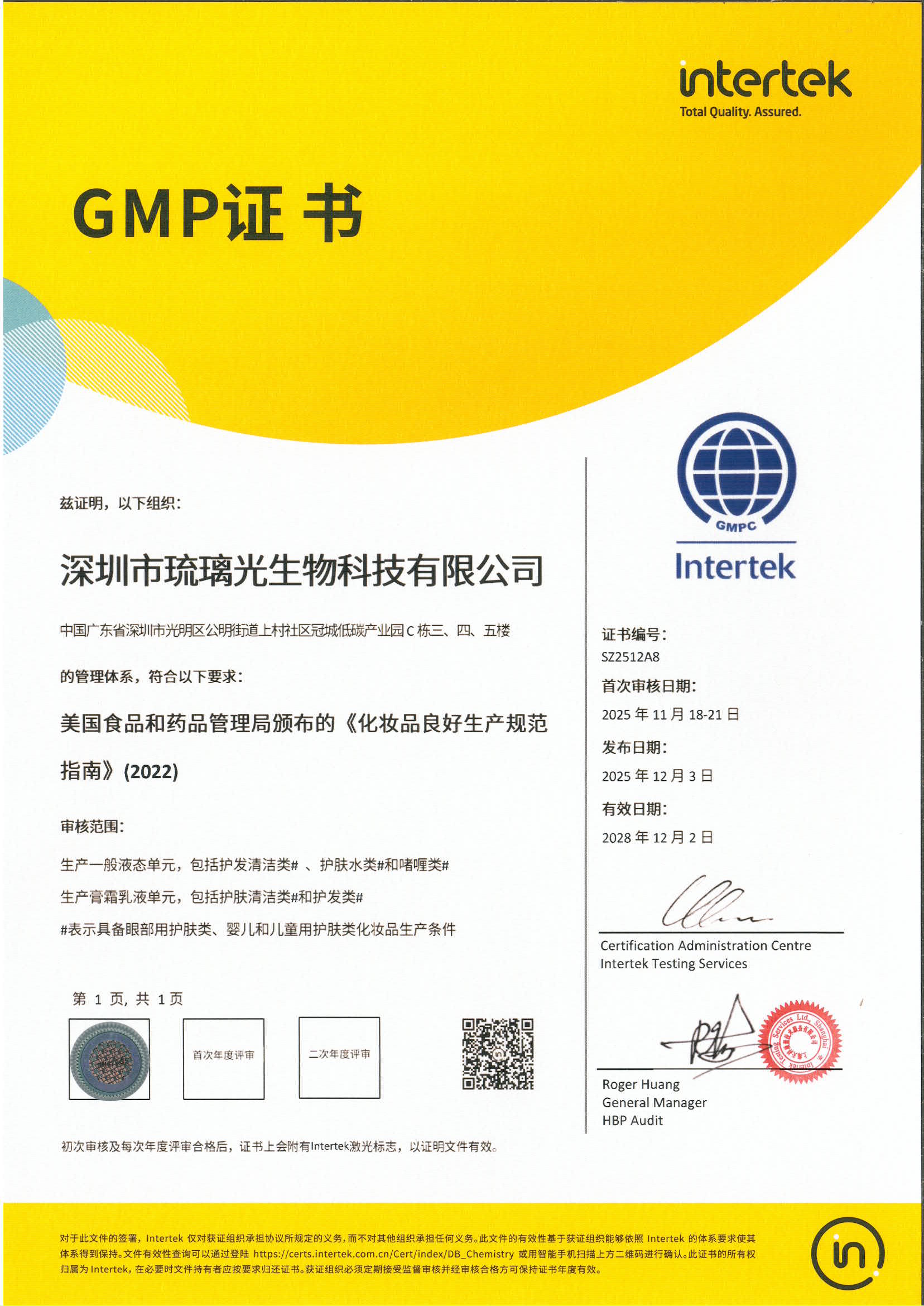 琉璃光GMP證書_美國(guó)GMPC中文證書